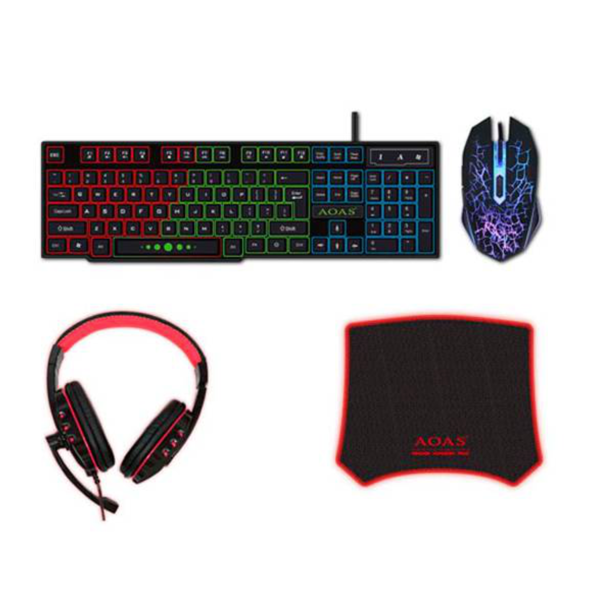 AOAS AS-1088 RGB لوحة مفاتيح وماوس وسماعة رأس ولوحة ماوس - مجموعة من 4 قطع