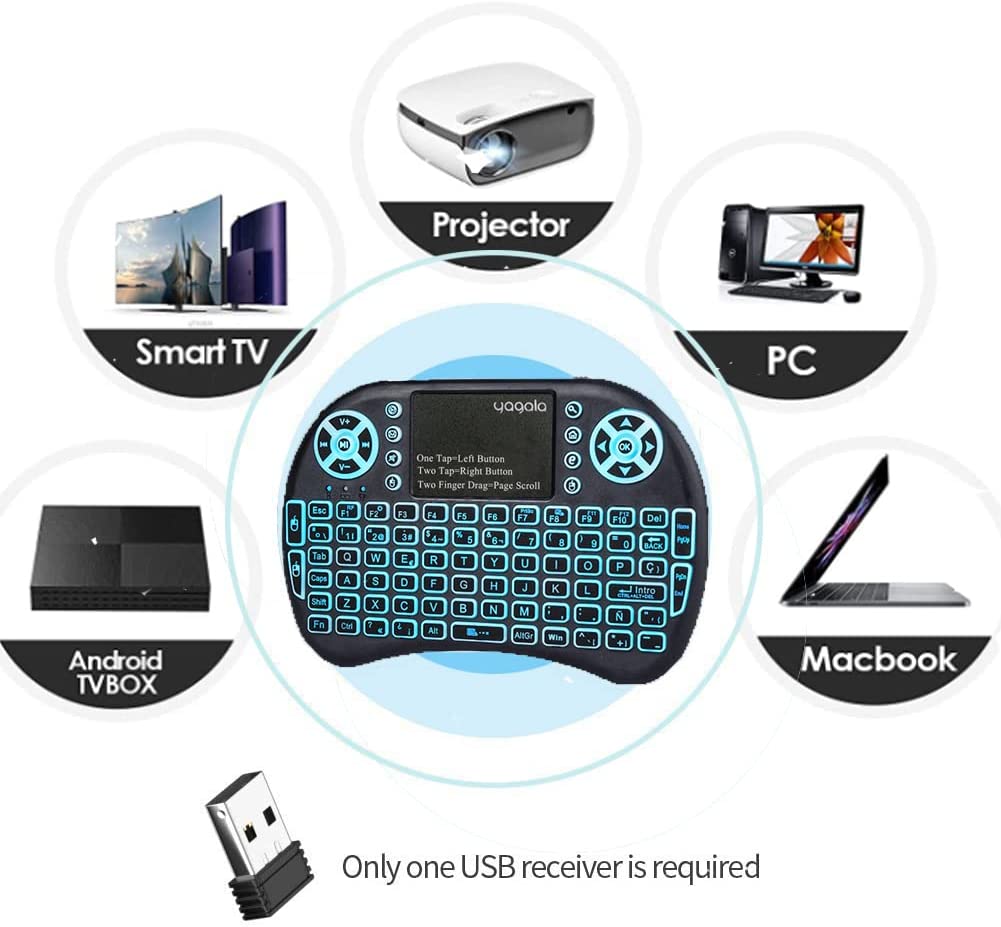 لوحة مفاتيح صغيرة بإضاءة خلفية مع ماوس لمس ٢.٤ جيجاهرتز لأجهزة الكمبيوتر | أجهزة الكمبيوتر المحمولة | أجهزة التلفزيون الذكية | أجهزة أندرويد | أجهزة التلفزيون