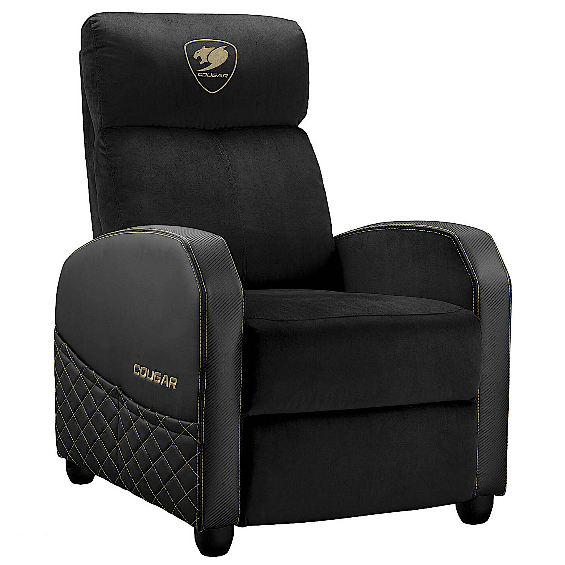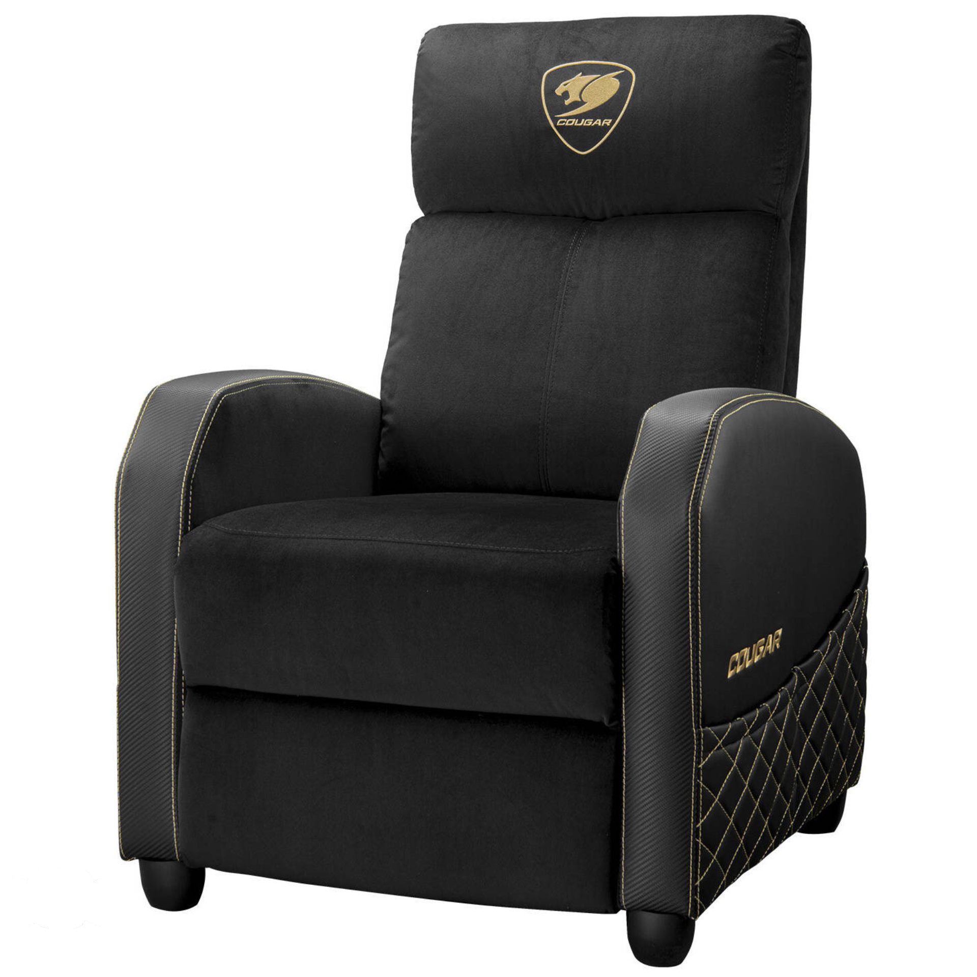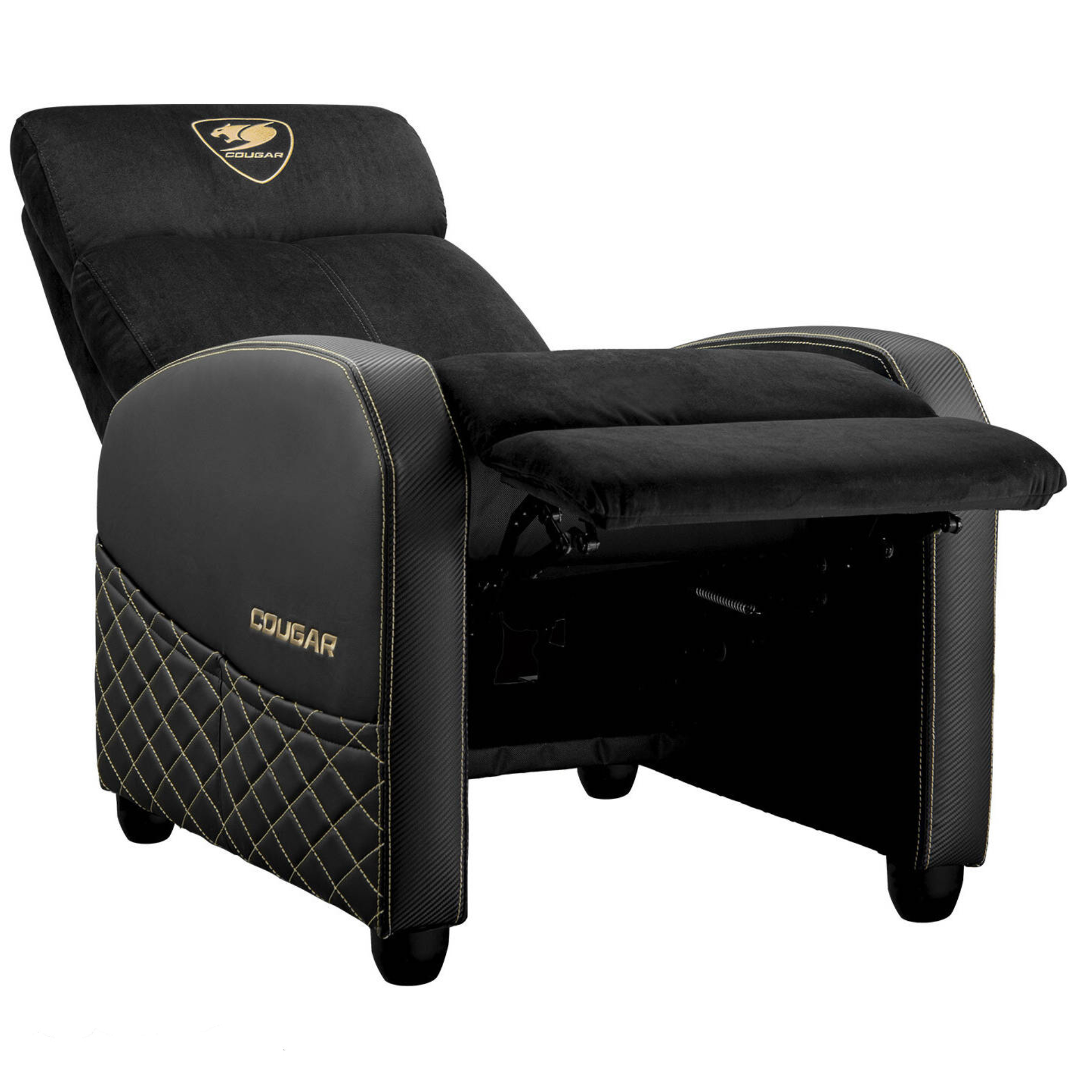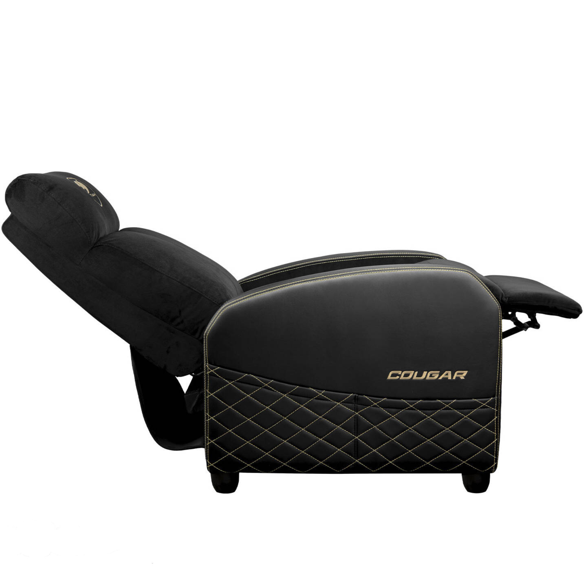 أريكة ألعاب كوغار رينجر إيليت جولد، قابلة للإمالة، تنجيد مخملي فاخر، جيب جانبي، مسند قدم قابل للطي ومسند ظهر قابل للإمالة