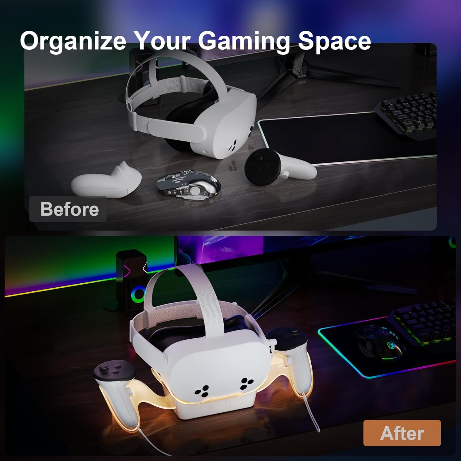 محطة شحن DOBE مع بطاريات قابلة لإعادة الشحن وإضاءة LED لجهاز Meta Quest 3 | Meta Quest 3S