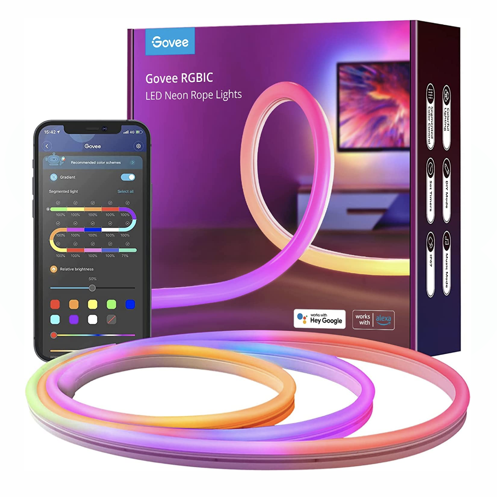 - ألوان RGBIC ديناميكية: أطلق العنان لخيالك مع تقنية Govee RGBIC. أضف المزيد من الألوان دفعة واحدة على ضوء الحبل النيون القابل للانحناء، واعرض تأثيرات انسيابية وحيوية مستوحاة من الطبيعة والعطلات والمشاعر.