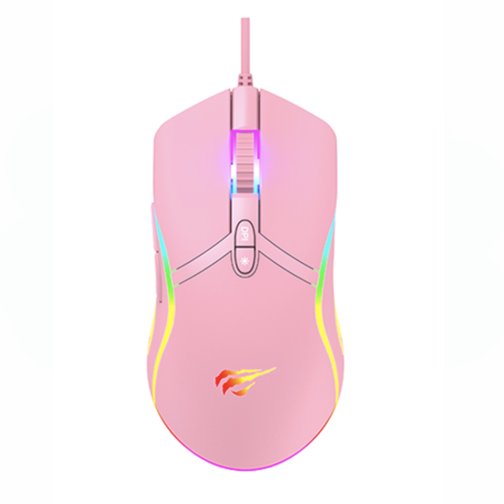 ماوس الألعاب Havit MS1026 RGB القابل للبرمجة بإضاءة خلفية - وردي