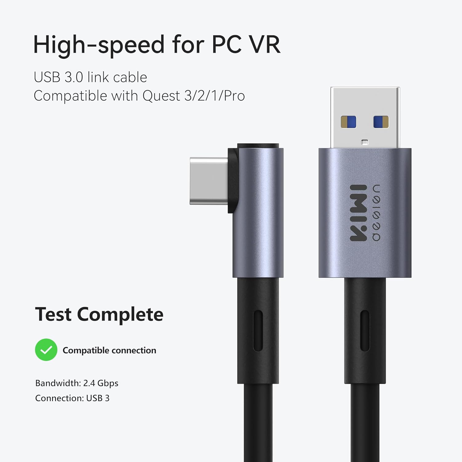 - متوافق مع Quest 3S/3/2/1/Pro، وPico 4، توصيل وتشغيل فوري】يربط كابل USB 3.0 هذا جهاز Quest 3 بجهاز كمبيوتر ألعاب، مما يتيح لك تشغيل جميع ألعاب الواقع الافتراضي على الكمبيوتر. يُرجى قراءة النصائح الواردة في محتوى A+ بعناية للتأكد من أن كابل الواقع الافتراضي هذا يعمل بشكل صحيح. ملاحظة: عند توصيل جهاز الكمبيوتر، يُرجى إدخال كابل USB 3.0 هذا في منفذ USB A 3.1/USB A 3.0.