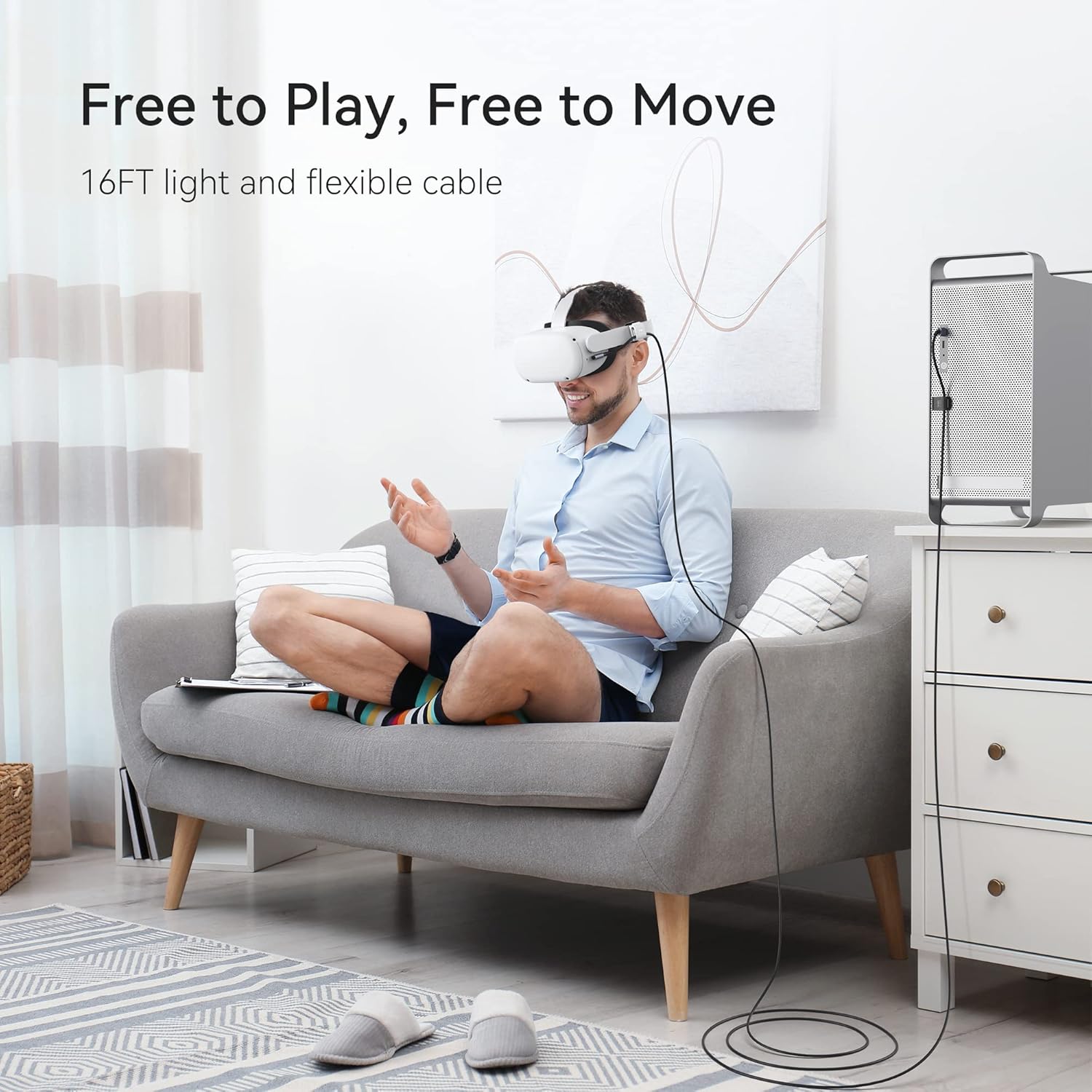 - 【حركة حرة مرنة】 يصل الطول الأمثل إلى 5 أمتار وتصميم على شكل حرف L، مما يوفر تجربة هي الأفضل في فئتها مع متانة مرنة وخفيفة الوزن، مما يمنحك أقصى قدر من حرية الحركة دون تقييد أثناء الانغماس في عالم الواقع الافتراضي.