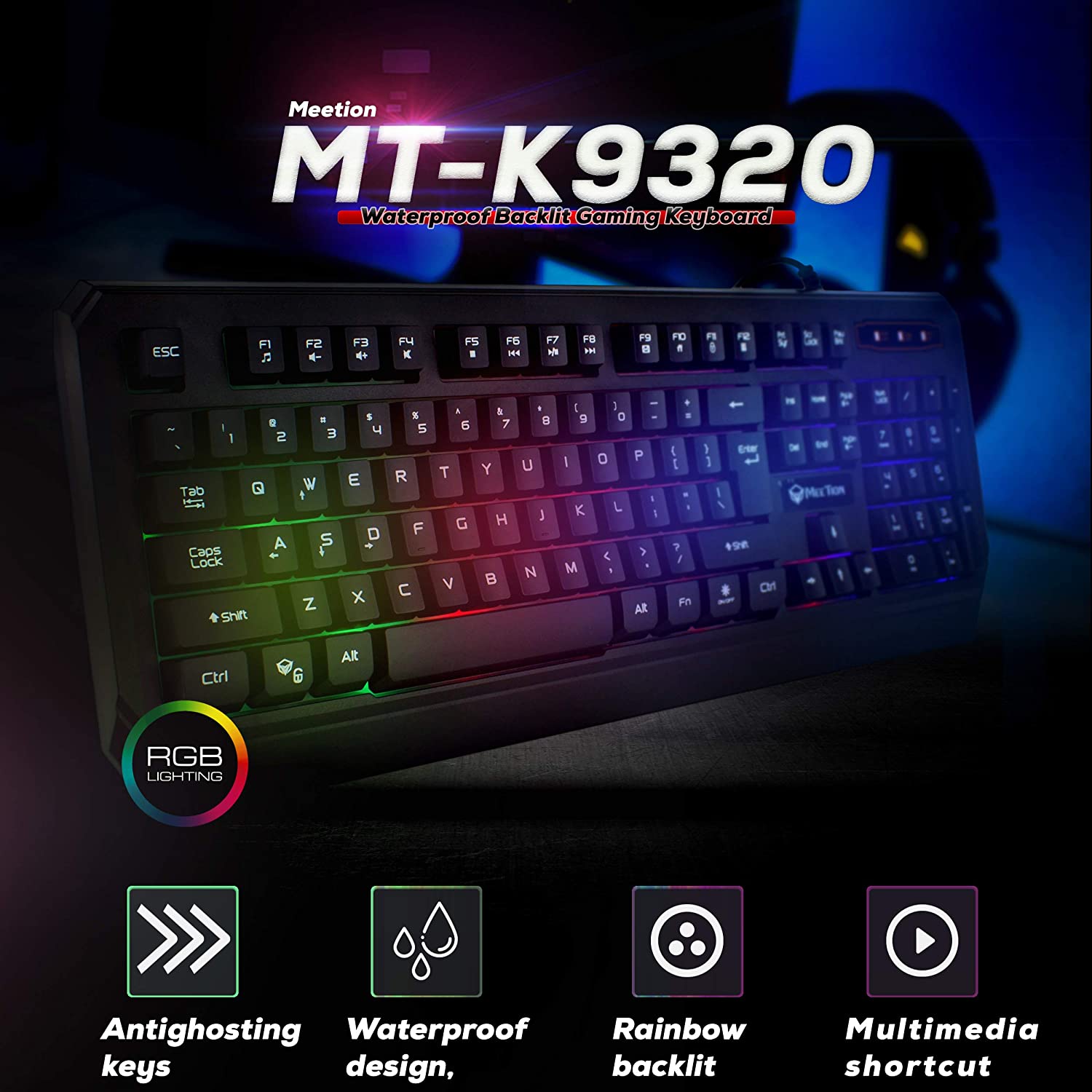 لوحة مفاتيح الألعاب ذات الإضاءة الخلفية Meetion K9320