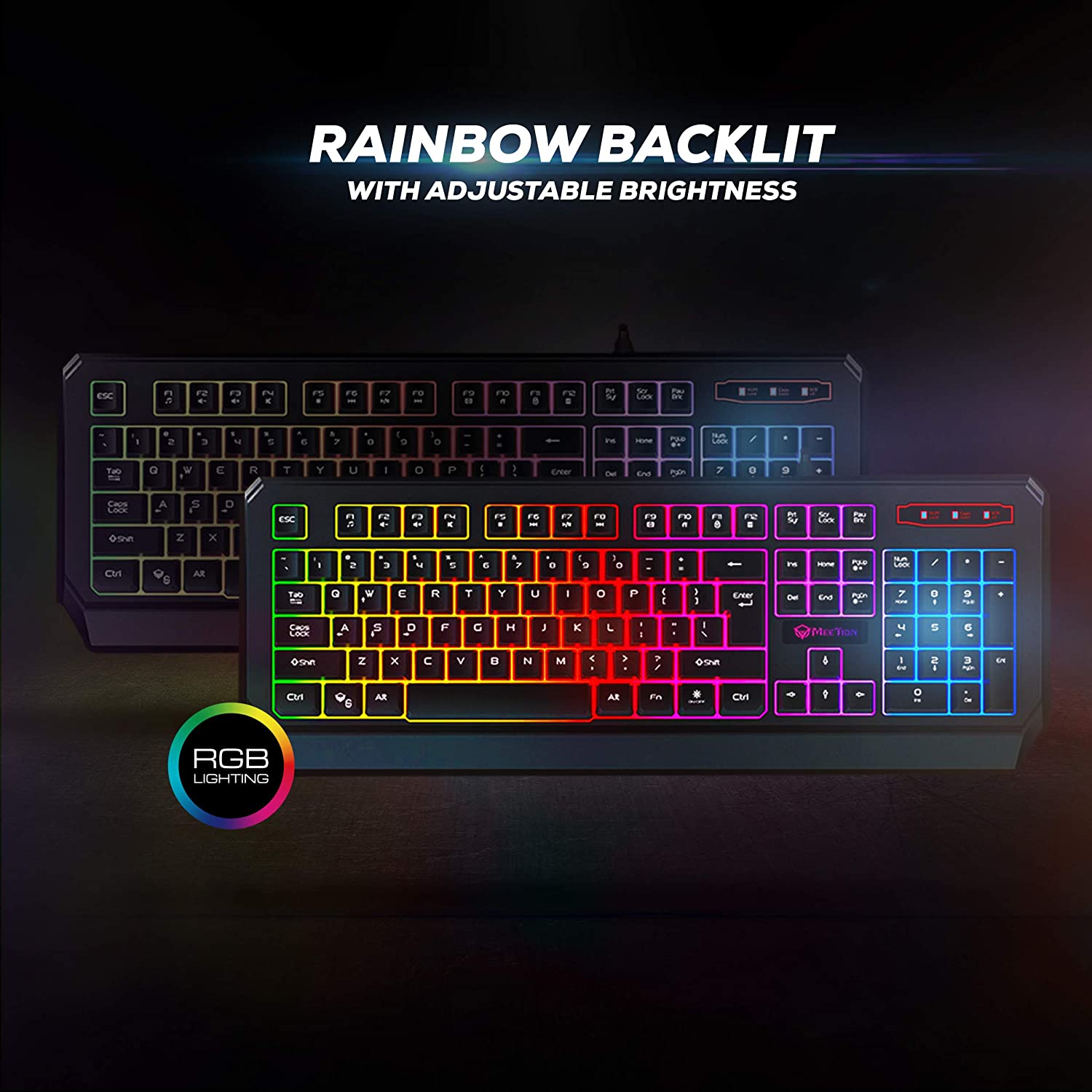 إضاءة خلفية بألوان قوس قزح مع سطوع قابل للتعديل.