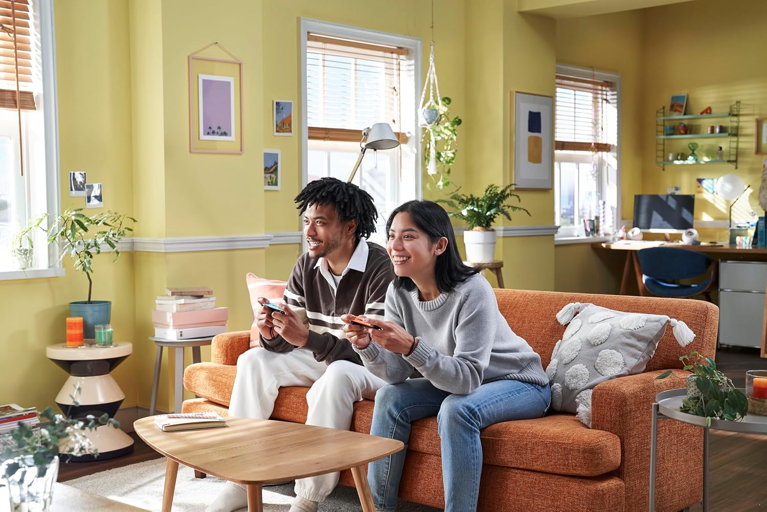 استمتع بألعابك مع شاشة أكبر بدقة 1080 بكسل، أو وصّلها بالتلفزيون واستمتع بدقة تصل إلى 4K**. يدعم HDR وVRR ومعدلات إطارات تصل إلى 120 إطارًا في الثانية، مما يتيح لك الاستمتاع بألوان زاهية ووضوح عالٍ وتجربة لعب سلسة. ثبّت وحدتي تحكم Joy-Con™ 2 الجديدتين في مكانهما باستخدام موصلات مغناطيسية.