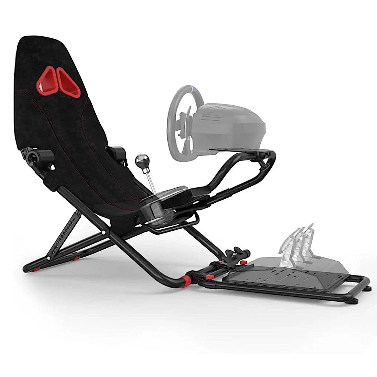 حامل مقعد محاكي ألعاب السباق القابل للطي، ودعم عجلة القيادة - أسود