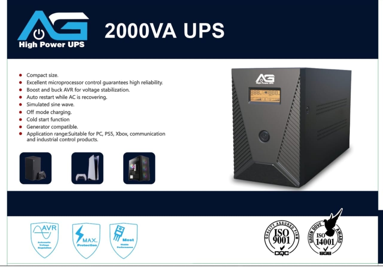 AG 2000VA Gaming UPS Uninterruptible Power Supply for PS4 Pro | PS5 | Xbox Series | PC