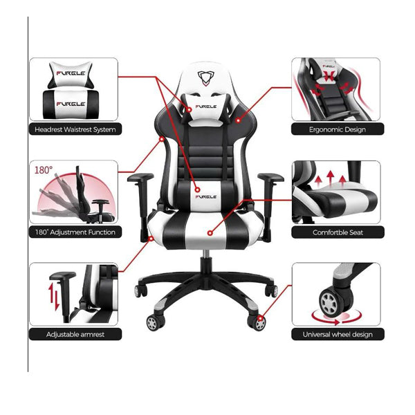 Furgle Gaming Chair's use of super-resistant foam sponge, wear-resistant PU leather surface layer, and high-strength steel skeleton with a diameter of up to 22 mm results in a perfect streamlined appearance and optimal comfort. Long-term sitting won't deform or wear, and can effectively lessen the fatigue of long-term games.