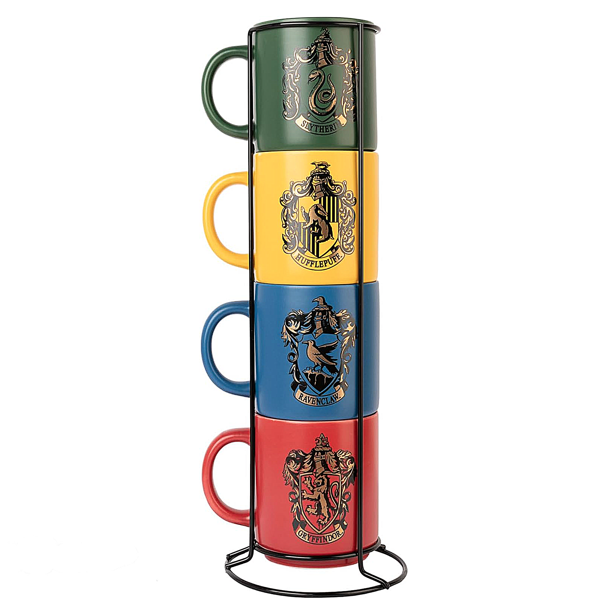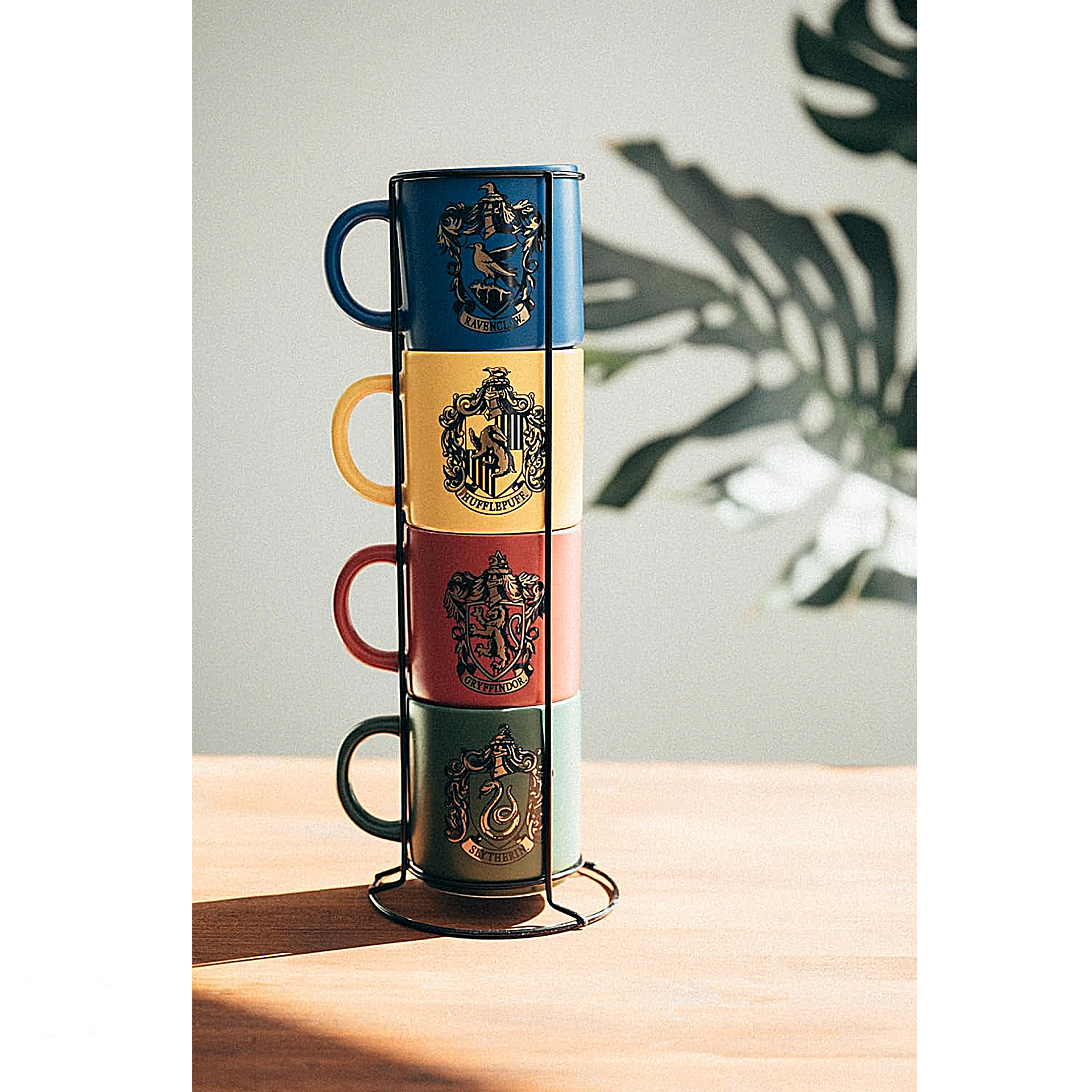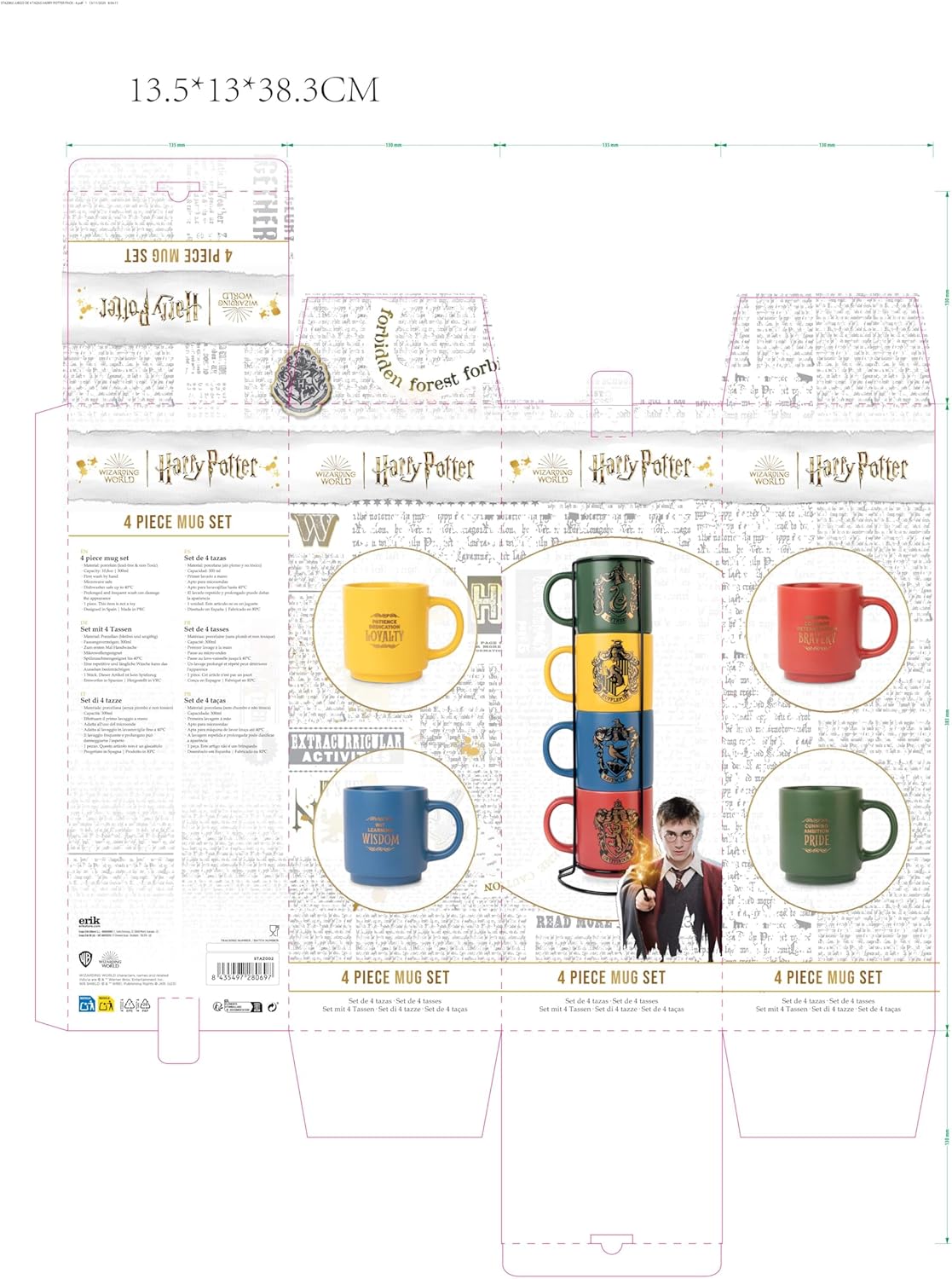 Erik Harry Potter Coffee Cups Set of 4 Hogwarts Houses - Ceramic Coffee Mugs Gryffindor, Slytherin, Ravenclaw and Hufflepuff - Cups Set of 300 ml Each