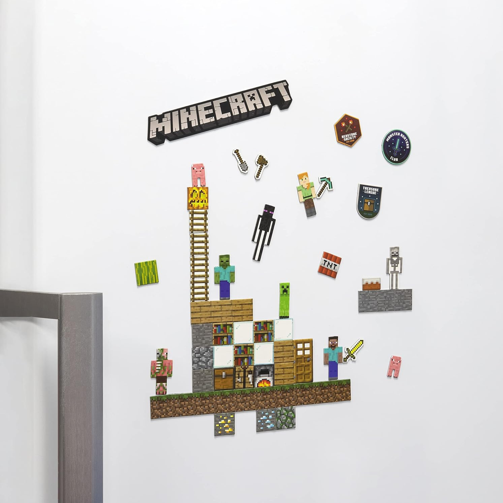 - MINECRAFT MAGNETS: Featuring Steve, Alex, Creeper and all the icons and badges you know and love, this set of kitchen magnets can be placed on any magnetic surface to add some fun to your space